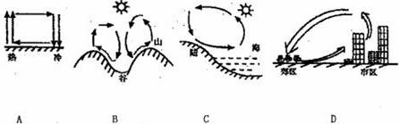 26.下列四幅表示热力环流的简图,错误的是 ( )