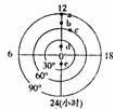 ,当晷针影子恰好与晷针正下方的刻度线重合时,北京时间为12:54。读赤道日晷示意图,回答24-25题。