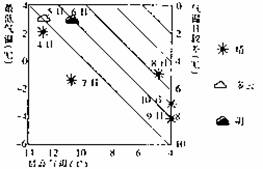C.甲地海面水温比海底高4℃ D.甲地海面水温比常年平均水温偏高4℃