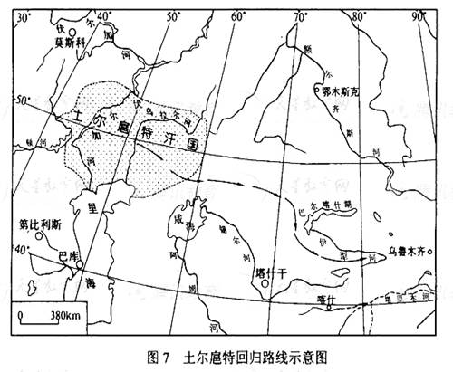 (2)土尔扈特人在回归途中历经艰辛,其中来自自然的威胁主要有哪些?(8分)