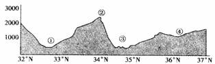 下图是沿东经109度的地形剖面图,回答以下2题。