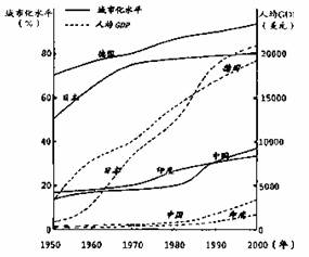 读下列国家城市化水平与人均GDP(按购买力平价法计算得出)水平统计图,完成下列各题: