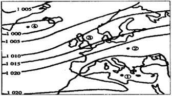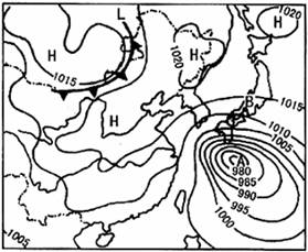 22.读图“亚洲部分地区2007年9月5日的近地面等压线天气图”(单位:百帕),回答下列问题。(10分)