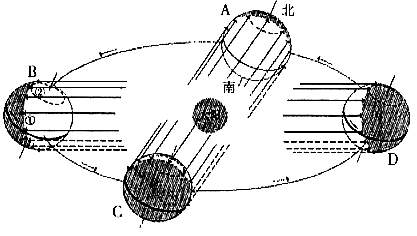 (5)地球由D位置公转到A位置的过程中,地球表面极昼现象的变化范围是_________
