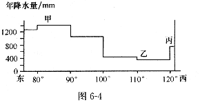 图6-4是“某大陆35º纬线的年降水量分布示意图”,读图后回答16-18题。