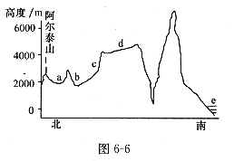 图6-6为沿东经89º经线的地形剖面图,读图判断22-23题。