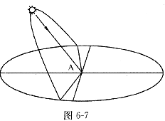 读图6-7北半球中纬度某地某日的太阳视运动路径图,已知∠A为50º,据此回答27-28题。