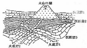 下图示意某地沉积岩层与火成岩体的相互关系。据此回答第29题。