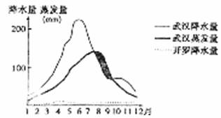 下图是同处北纬30°开罗与武汉长水量与蒸发量曲线图。回答下列两题。