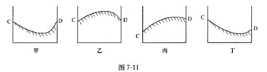 (2)如图7-10为等高线图,则AB为 ,图7-11四个剖面图与CD剖面最吻合的是 。(2分)