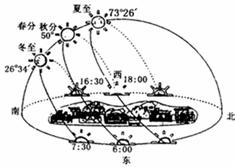 (3)根据上图推算该地夏至日的日出日落时间日出 日落 。(2分)