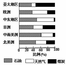 (1)油气资源在化石能源消费结构中居世界首位的地区是_______________,世界石油生产与消费总量缺口最大的三个国家是_____ __、_______ _和中国。(3分)