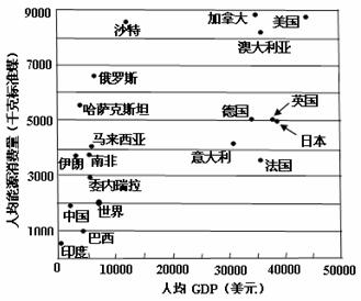 图2 主要国家经济水平与能源消费关系图(2006年)