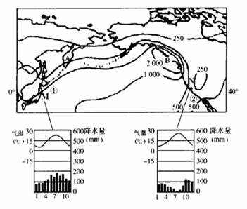 下图为“世界局部区域年降水量分布图”(图下方两小图分别表示M和N两地的气候资料图)。读后回答19-20小题。