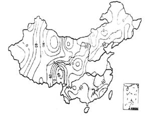 年蒸发量变化速率指标能够反映蒸发量的时间变化。如“-40mm/10a”表示年蒸发量10年间减少了40毫米。下图为“1956-2000年全国年蒸发量变化速率(mm/a)空间分布图”。读图结合相关知识回答21-22题。