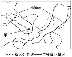 读“我国局部地区年等降水量线图”,回答2--3题。