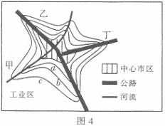 图4是某城市的等值线分布图,图中a>b>c。据图分析完成7题-8题。