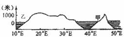 读沿某纬度所作的海陆剖面示意图,当北半球夏至日,甲地的正午太阳高度角为43°,判断17一19题。