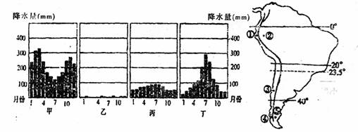 (1)下列四幅降水柱状图中,能正确反应③地和⑤地降水状况的分别可能是