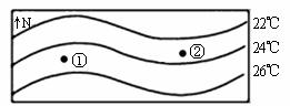 A.位于南半球 B.处于冬季 C.①处可能是北美洲 D.②处可能是亚洲