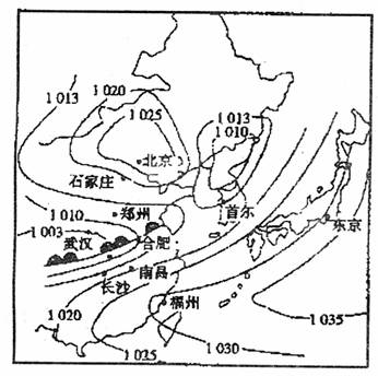23.下图是东亚地区某日天气形势图,根据图中提供的信息完成下列问题。(8分)