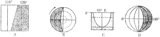 1.与该日对应的太阳光照图正确的是(阴影部分表示黑夜) ( )