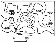 (2)比较甲山脉相同海拔东南坡和西北坡气温年较差的大小,并说明理由。(3分)