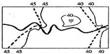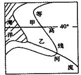 下图中甲地常年受西风控制,此时地球位于分转轨道的远日点附近。据此回答8-9题。