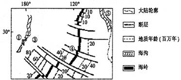 C.②附近地区地热资源丰富 D.⑤附近是板块的生长边界
