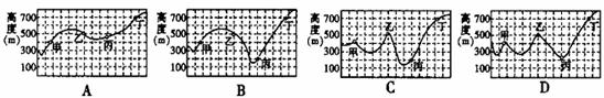 19.经过甲、乙、丙、丁四地所绘制成的剖面图,最可能的是