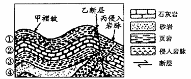 下图为某处地层未曾倒置的地质剖面图。其中①至④代表不同的地层。据此完成24-25题。