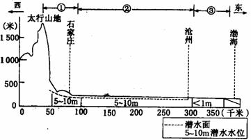 黄淮海平原地势十分平坦,海拔多在50米以下。从山麓到海滨,可以分为①山麓洪冲积扇平原(缓斜平原)、②冲积低平原、③滨海平原,三个组成部分的地表物质,地下水的化学成分、土壤、植被以及农业发展情况都有明显差别。读图完成34-36题。