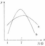 5.若y轴表示月平均气温,则a、b可能分别表示 ( )
