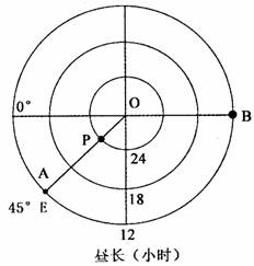 23.(12分)下图为某时刻的等日照时间图,OA、OB为日期界线,P点纬度为70°,读图回答下列各题: