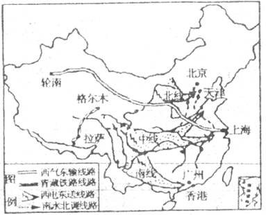 (1)填写四大工程名称:属水资源跨区域调配的是____________工程,属交通设施建设的是____________工程,属能源调配的是___________工程和___________工程。