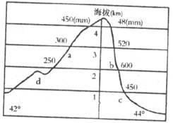 读新疆某山地沿经绒的地形剖面图及对应的年降水量资料,回答28-30题。