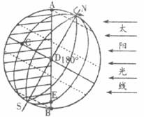 (2)图中AB是__________(晨、昏)线,D点的地方时为__________点,地方时为18点的经线是__________。