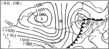(2)近日,将有__________锋从E地过境。C地在锋面过境后,气温将会出现的变化是_________________。(2分)