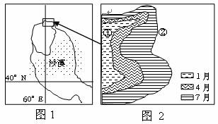下图1是世界某区域,区域内有著名湖泊,图2表示该湖泊其水位季节变化情况,读图完成7-8题