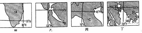 (七)读世界四区域简图(阴影部分表示陆地),回答: