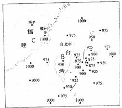 26.根据图上各点的气压数值(单位:百帕),以圆滑的曲线连接成等压线(等压距为25百帕)