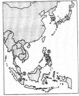 (十)2007年11月20日,第八次中国、日本、韩国领导人会议在新加坡举行。国务院总理温家宝分别会见了韩国总统、日本首相、印度尼西亚总统和菲律宾总统。读“亚洲”图,并回答问题。(12分)