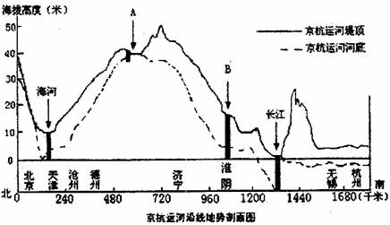 (二)读京杭运河地势剖面图,完成下列各题。(17分)