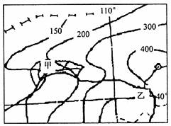 22.图中等值线为等降水量线,由此可知甲地农业发展的限制性因素是 ( )