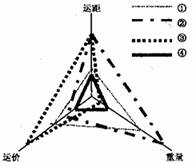 下图表示四类货物生产运输过程中的相关特征。读图回答29-31题。