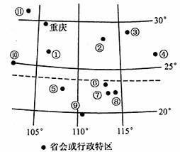 珠江三角洲是我国著名的经济发达地区,为了进一步加快其经济的引领作用,带动周边经济的发展,又划分了一个新的区域--泛珠江三角洲区域(即粤、桂、闽、赣、湘、滇、贵、川、琼、香港、澳门),下图是该区域的局部地区图,据此判断34-35题。