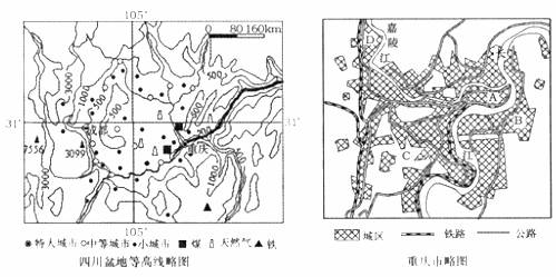 (2)分析重庆城市形态的形成原因。(2分)