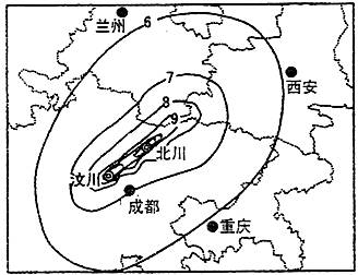 烈度是地震引起的地面震动及其影响的强弱程度。下图是汶川8.0级地震烈度分布图。读图回答9-11题。