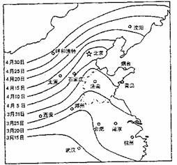 下图为我国杏树开花盛期物候图。读图回答14-15题。