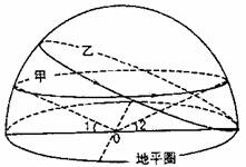 下图为北半球甲、乙两地某日太阳视运动路线图,箭头为太阳视运动方向,